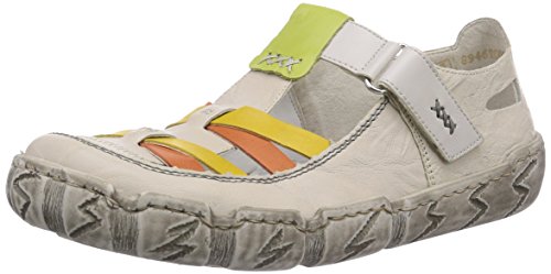Rieker Damen Sandalen, Ballerinas crema/aperol/yellow/limette/ice, Leder, Lederdecksohle, PU-Sohle